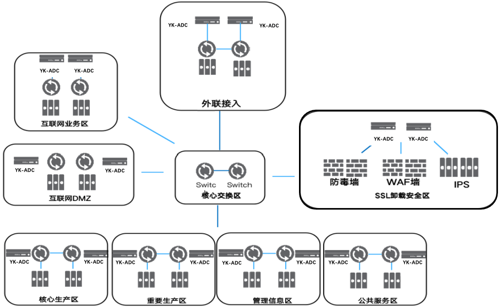 2、網(wǎng)銀接入LLB+GSLB結(jié)合,完美解決進(jìn)站出站流量多鏈路負(fù)載、雙中心智能調(diào)度,智能聚合多條運(yùn)營商鏈路,整合雙中心應(yīng)用系統(tǒng)資源